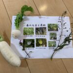 HOME > 2026年1月 >2026年1月 七草の日 2026/1/141月7日は七草の日。 この日は七草がゆを食べるのですが、お正月で疲れたお腹を休ませる事と 健康祈願の意味があるそうです。 活動で七草の中の2つスズナとスズシロを手で触って、匂いを嗅いだりしました。 他 ... 2026年1月 活動報告