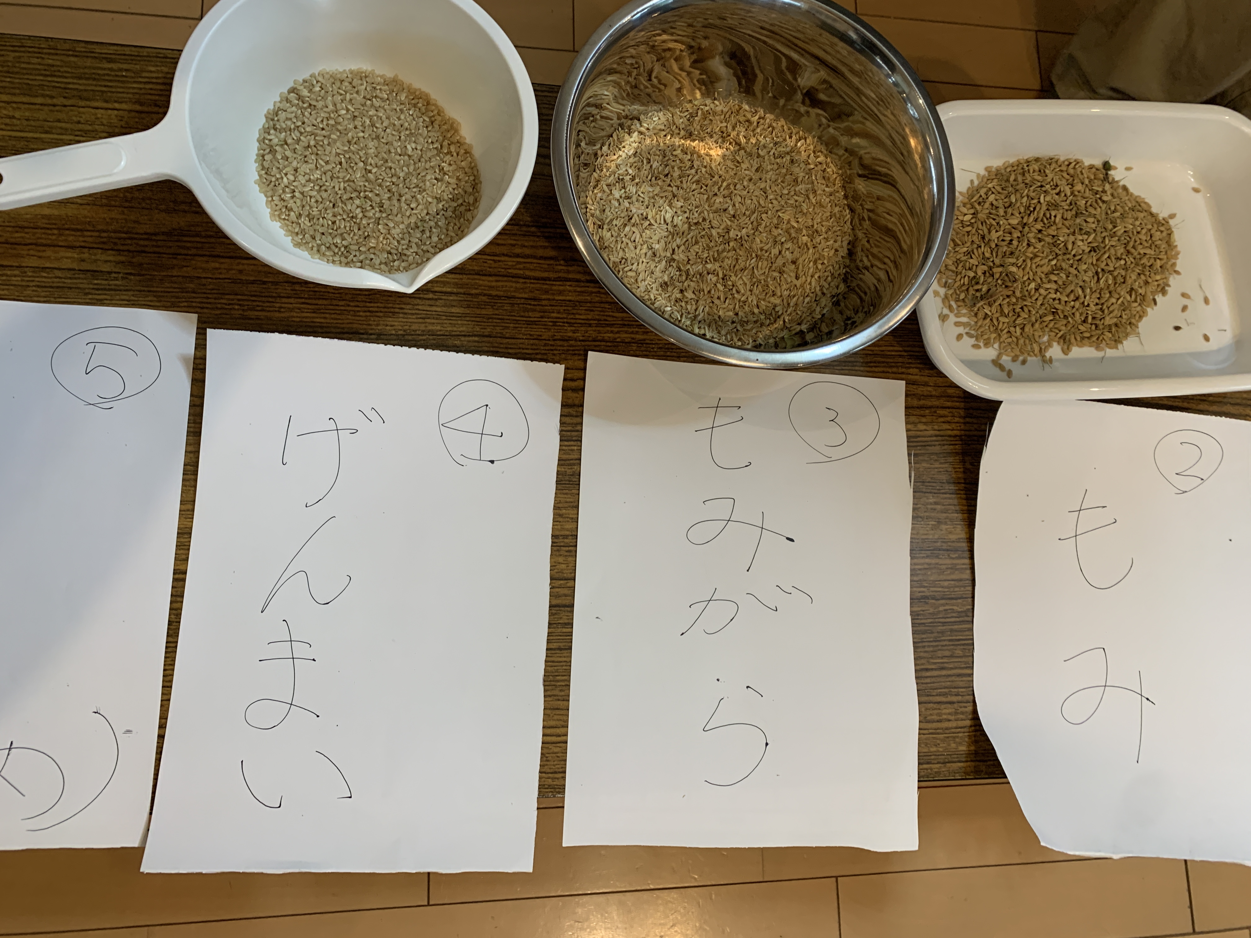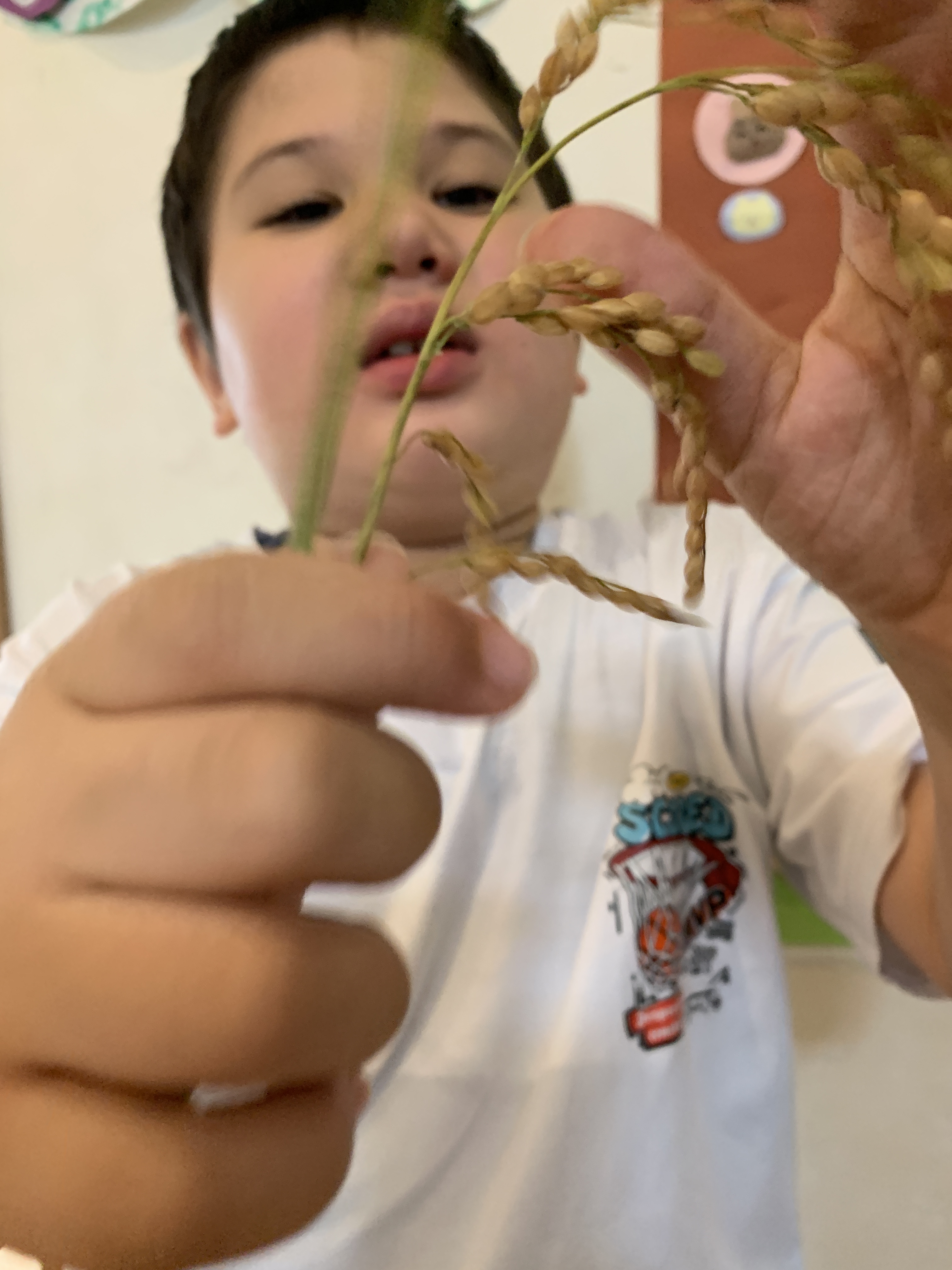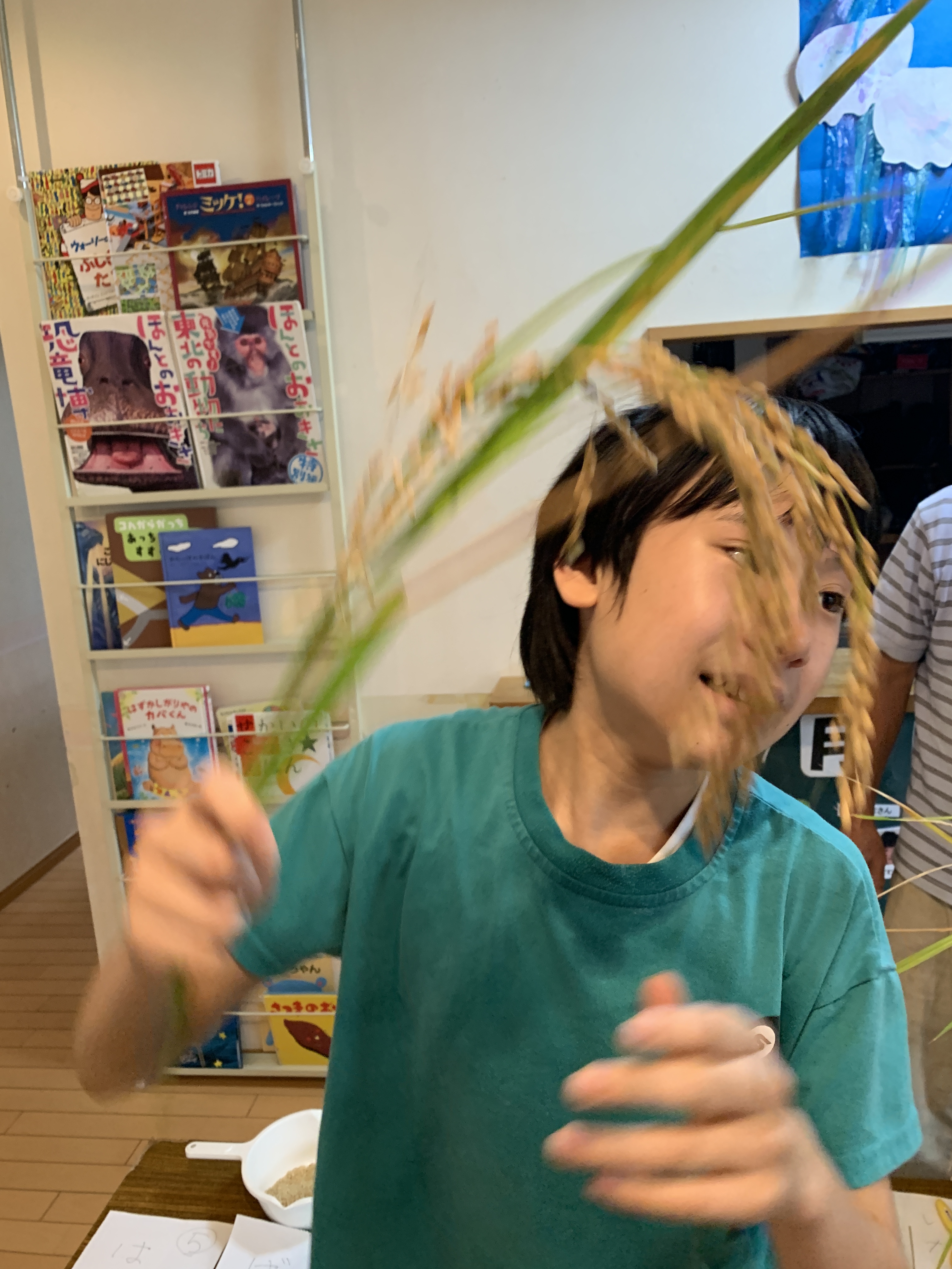 ふわふわなもみ殻や、硬い玄米などを実際に触って、稲の不思議な触感を体験。