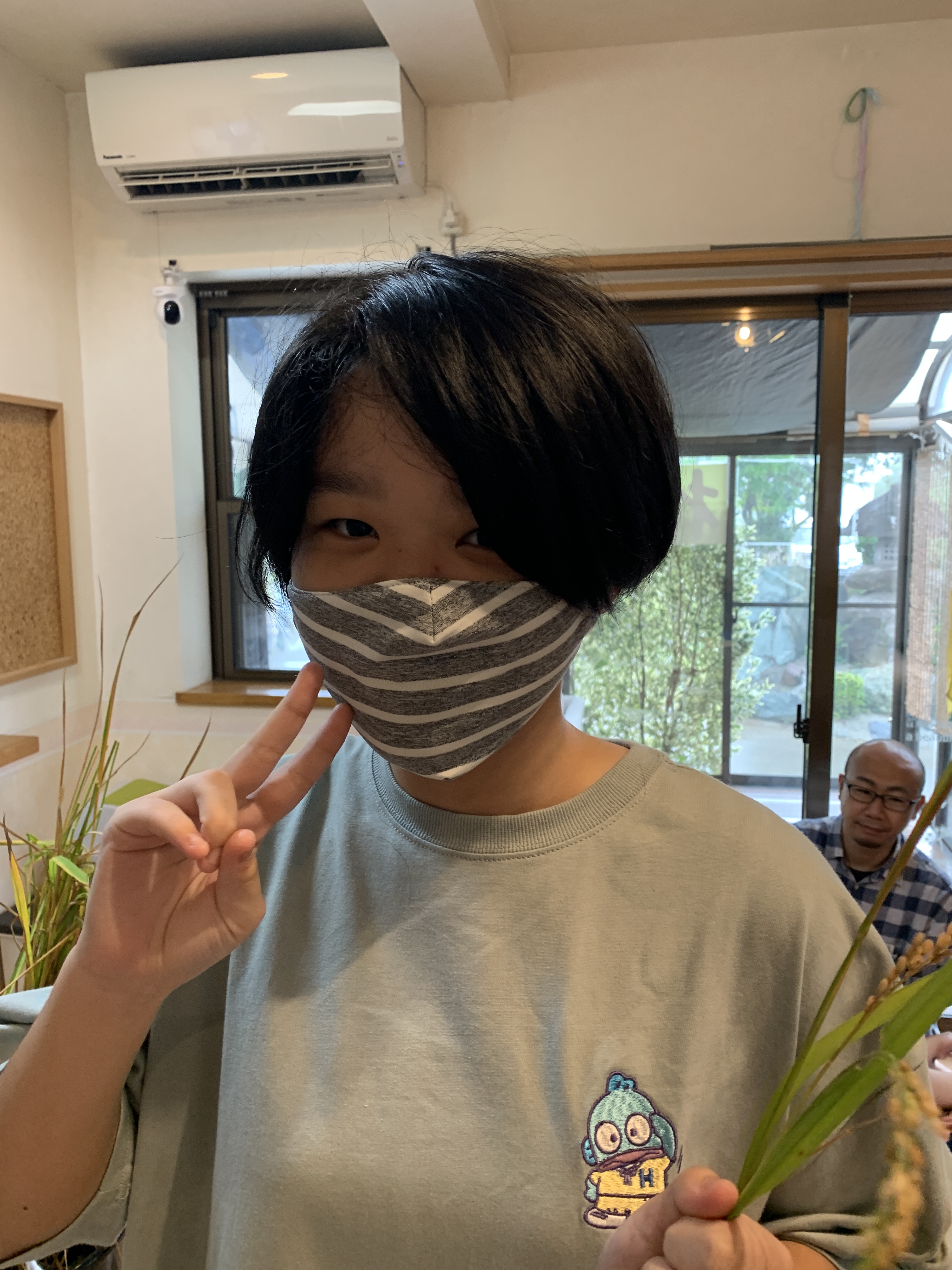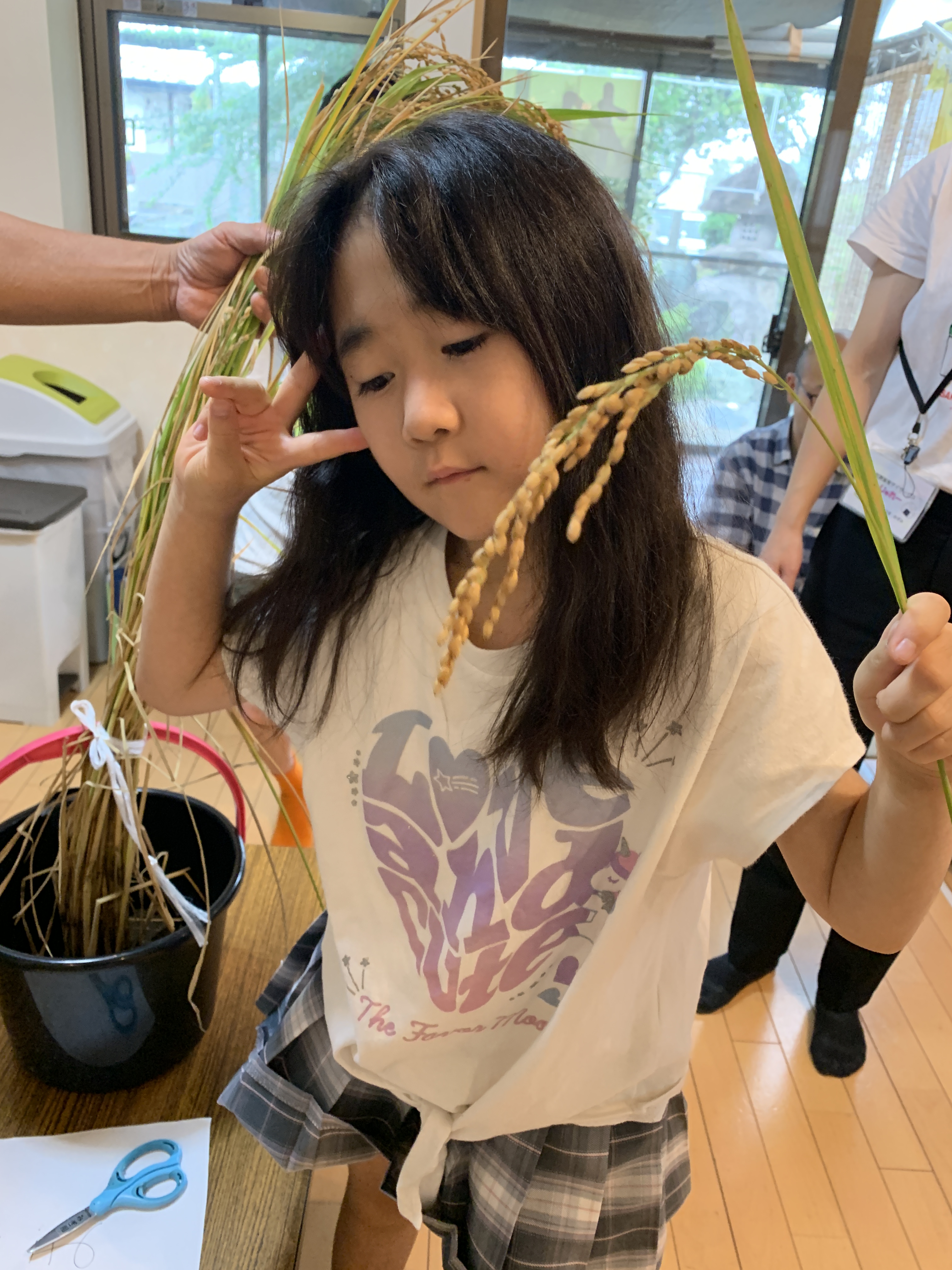 説明をしっかり聞いてみんなで稲刈り体験スタートです🌾